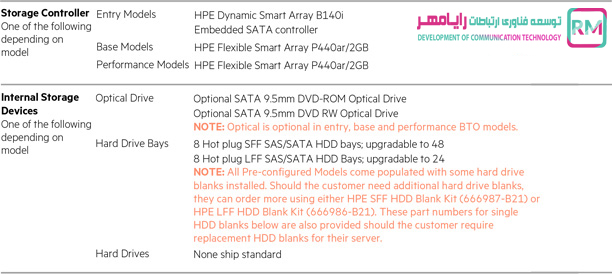 این سرور مجهز به کنترلر یکپارچه HP Smart Array P420i RAID است. طیف وسیعی از گزینه های ریدبندی با این کنترلر در دسترس است و می توان با حافظه های کَش 512MB ، 1GB ، 2GB بسته به نیاز شما پیکربندی شود.